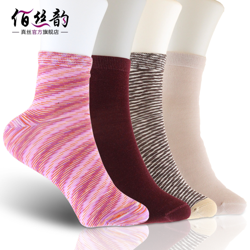 新款多色桑蚕丝女真丝针织女绢丝中筒舒适透气抗菌袜子