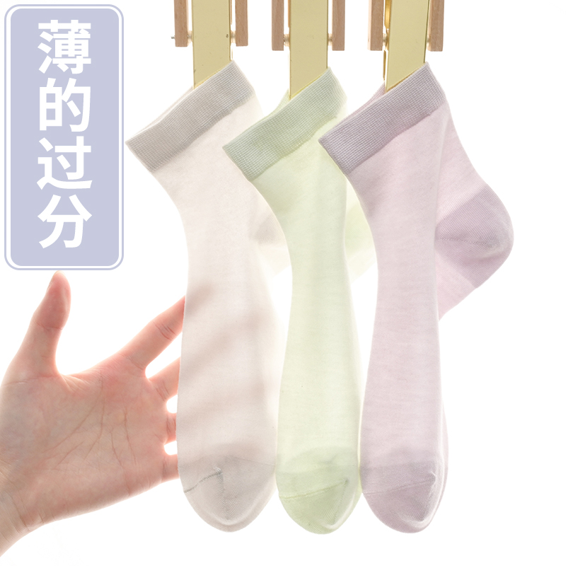 3双装86%桑蚕丝袜子男女士夏季超薄商务休闲西装袜中筒防臭真丝袜