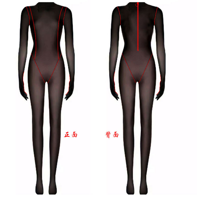 情侣912针油光女士内衣丝袜性感泳衣透视紧身连体三角连身袜纯色