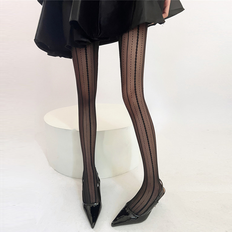 秋冬复古宫廷风竖条蕾丝透明丝袜日系洛丽塔甜美显瘦提花连裤袜