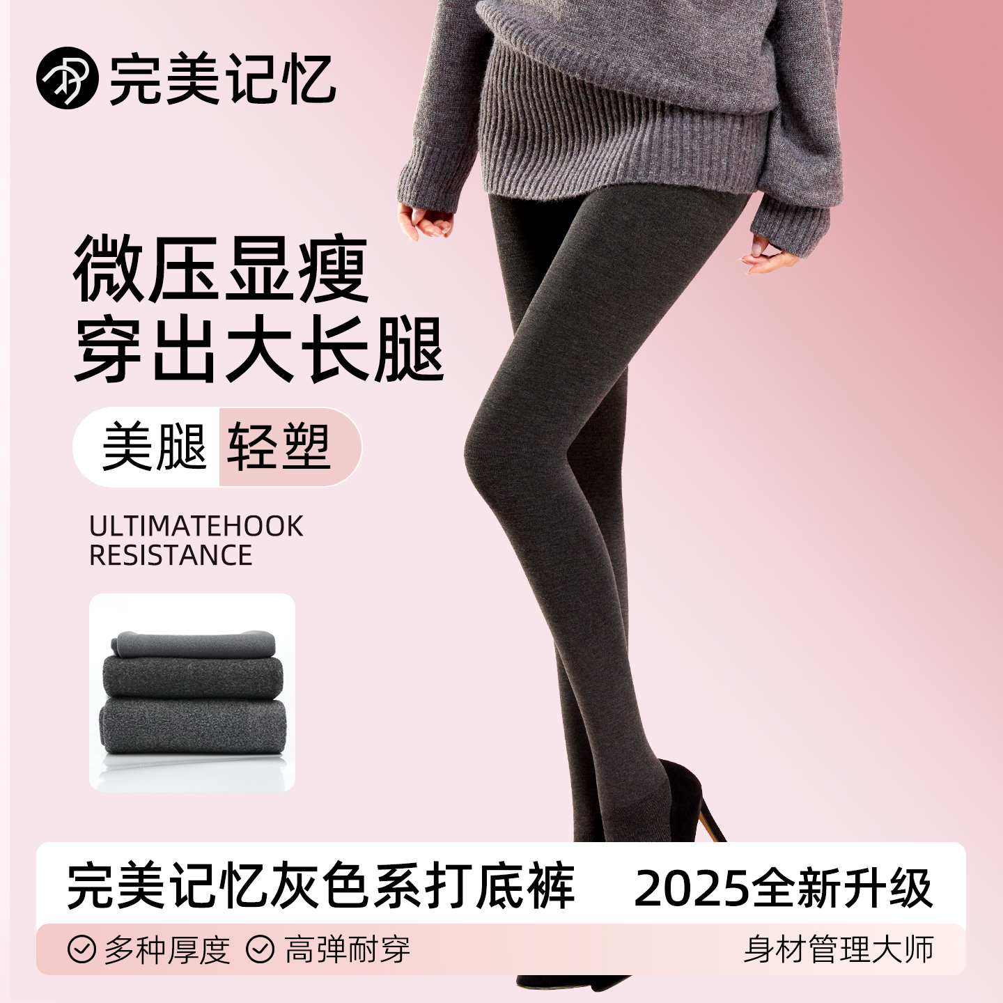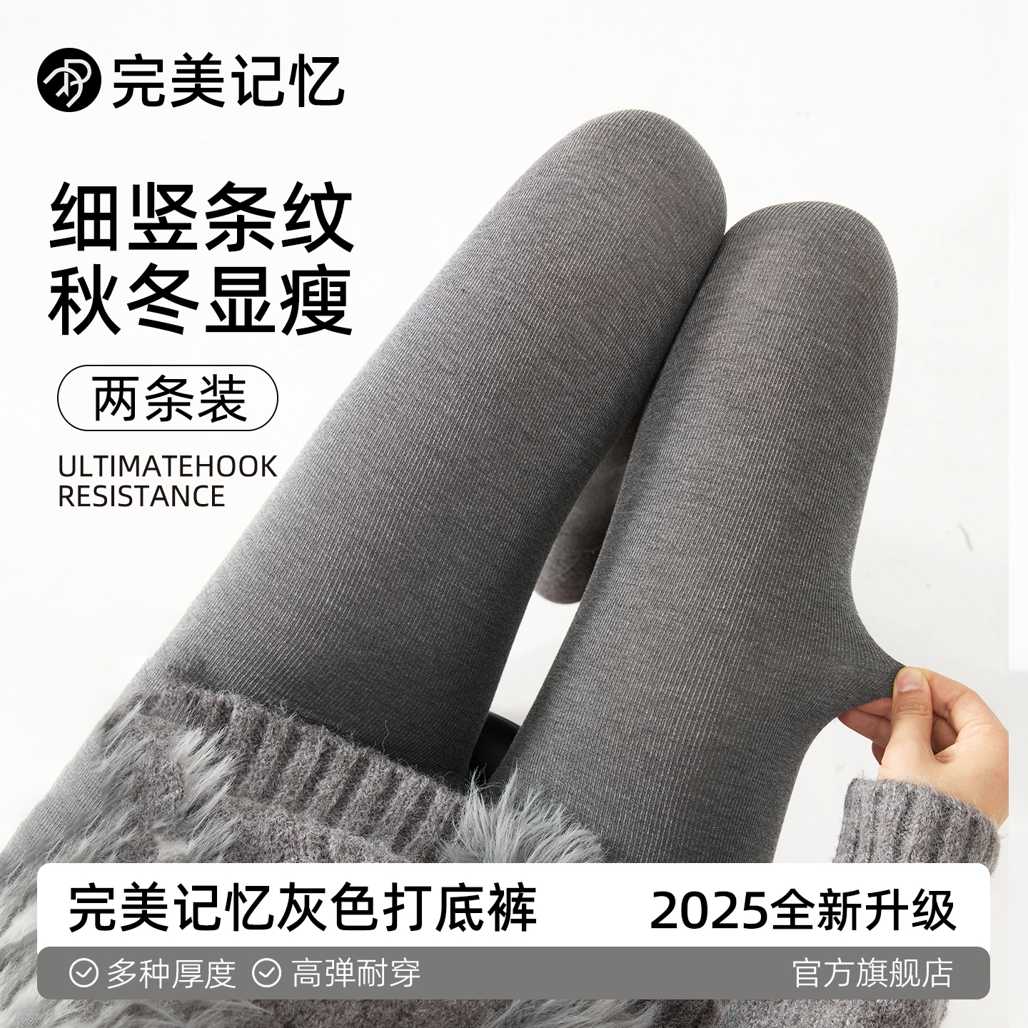 完美记忆打底裤女深灰色秋冬外穿连裤袜格雷系秋季薄款加厚绒竖条