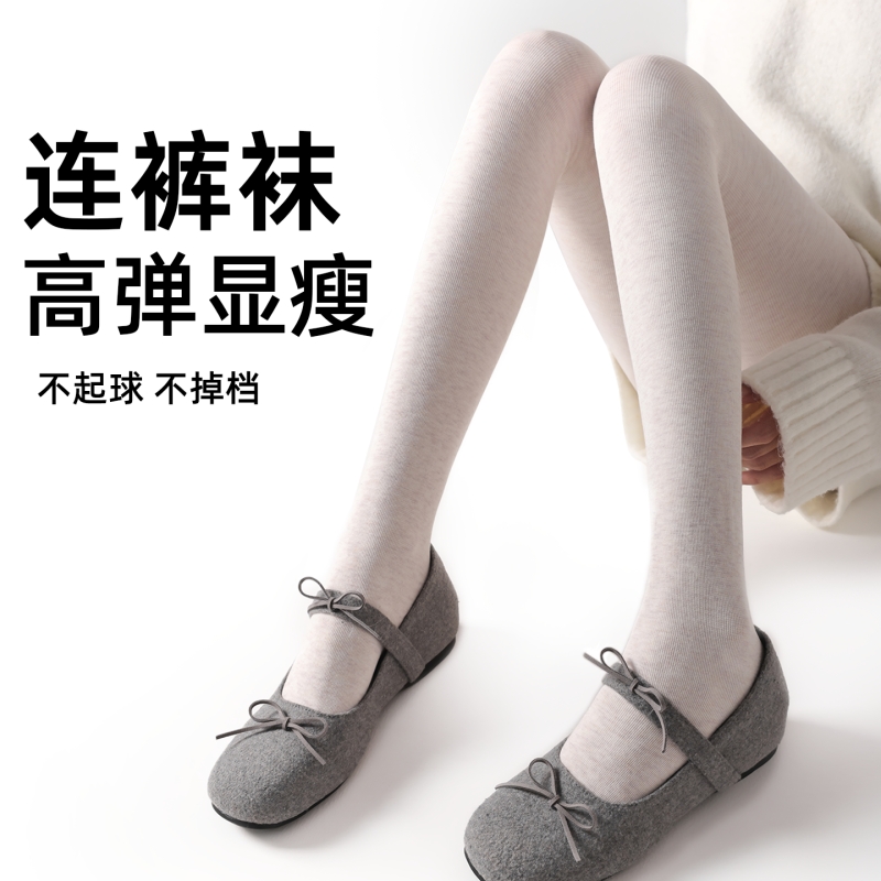 打底裤纯棉质薄款秋冬连裤袜日系显瘦紧身秋裤薄绒竖条踩脚袜灰女