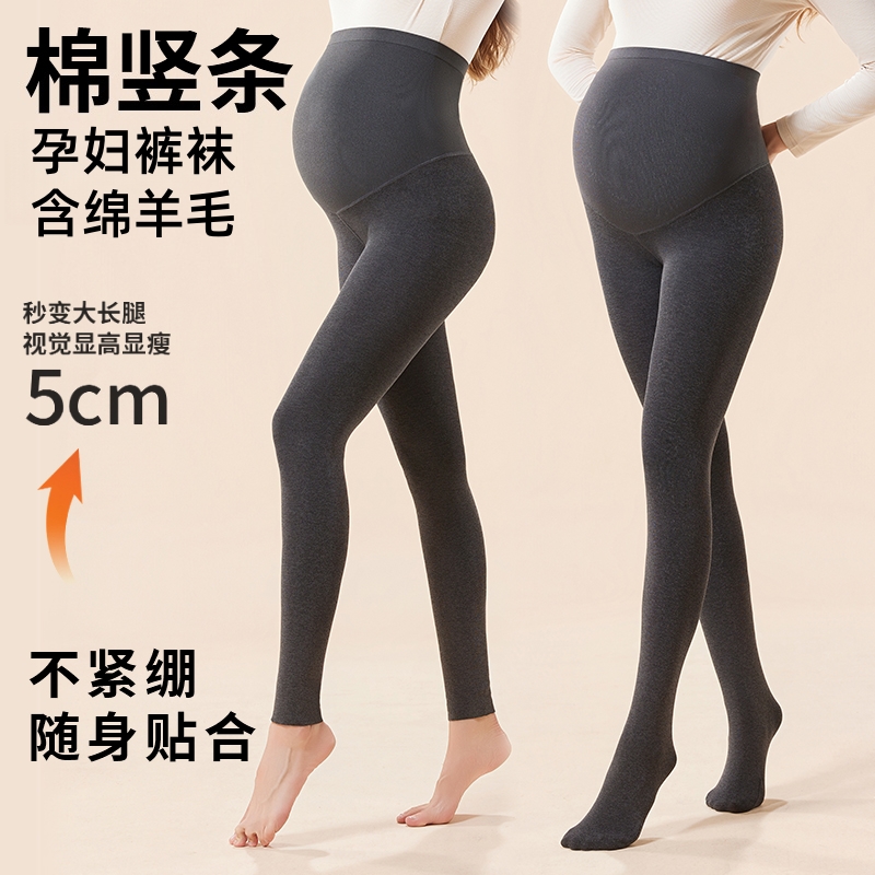 孕妇打底裤袜外穿秋冬加绒保暖棉质竖条显瘦加厚大码托腹连裤袜