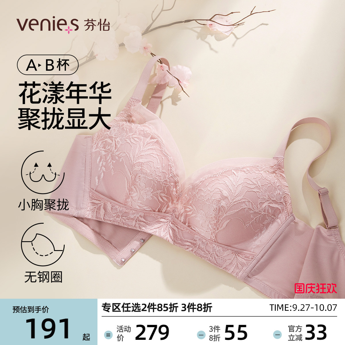 芬怡小胸聚拢内衣女四排扣调整型厚杯显胸大性感法式蕾丝文胸