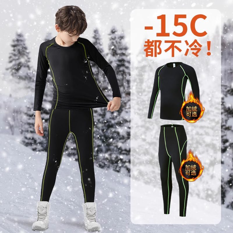 儿童滑雪速干保暖内衣紧身训练服冬季加绒运动套装足球篮球打底裤