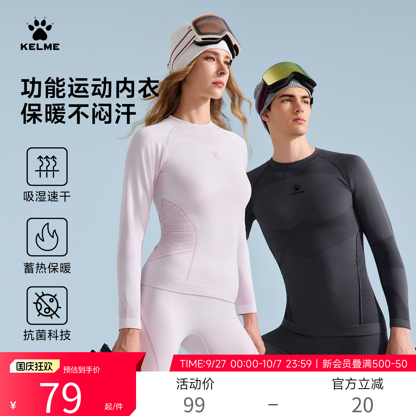 卡尔美运动速干衣男女秋冬季户外滑雪排汗透气压缩裤打底保暖内衣