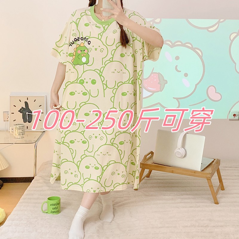 特大码睡裙女春夏季纯棉大码200斤卡通睡衣宽松孕妇可外穿连衣裙