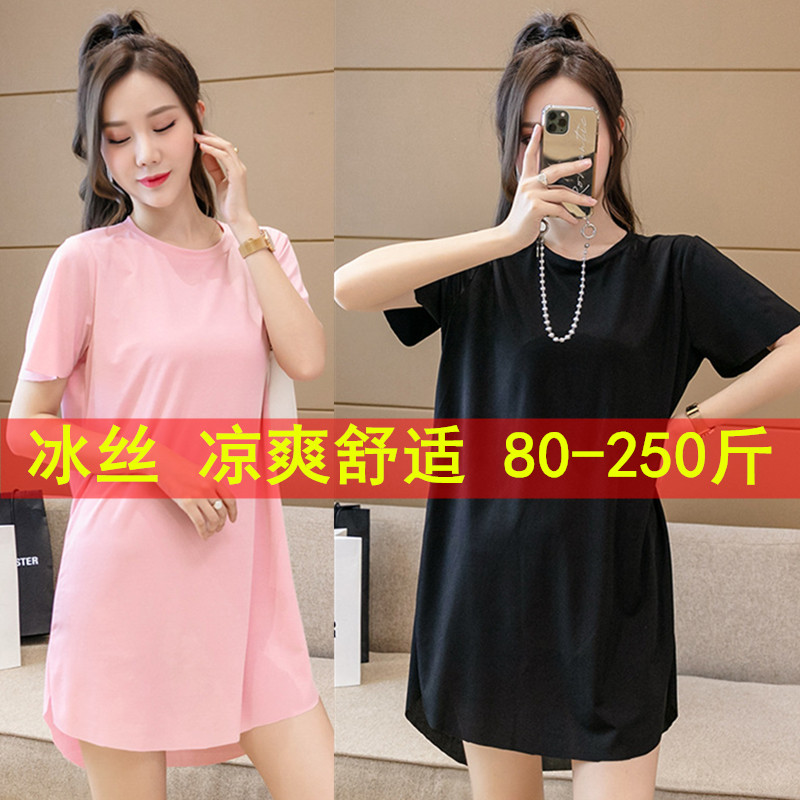 冰丝短袖连衣裙特大码夏季女200斤240胖妹妹加肥宽松家居中长睡裙