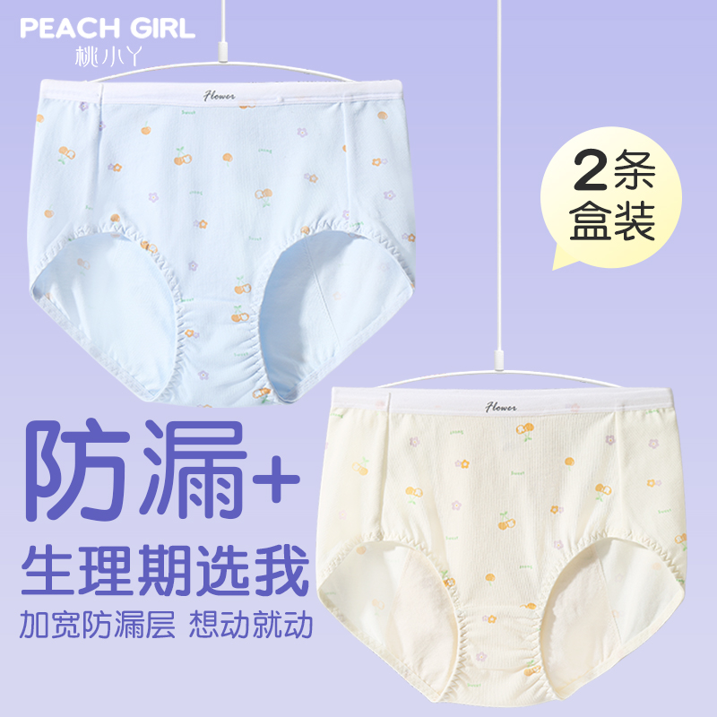 纯棉生理裤女士月经期防漏少女透气大码学生可爱中腰姨妈内裤全棉