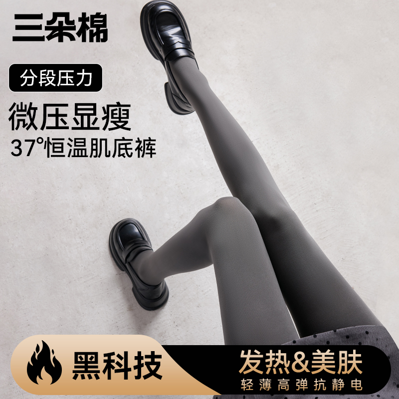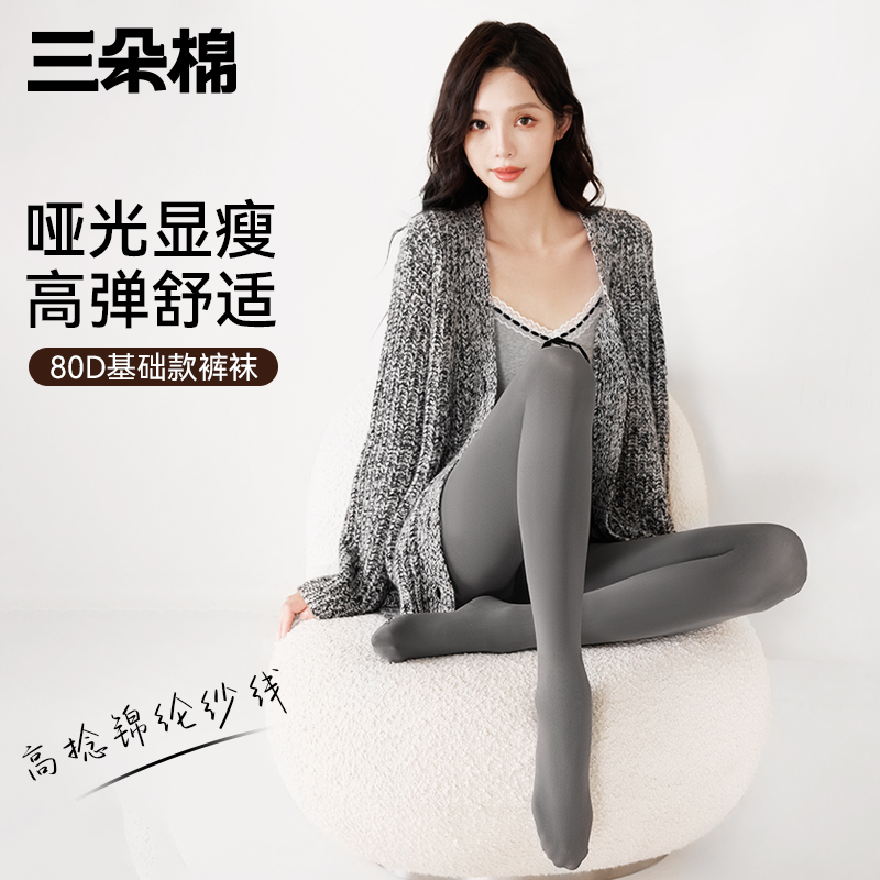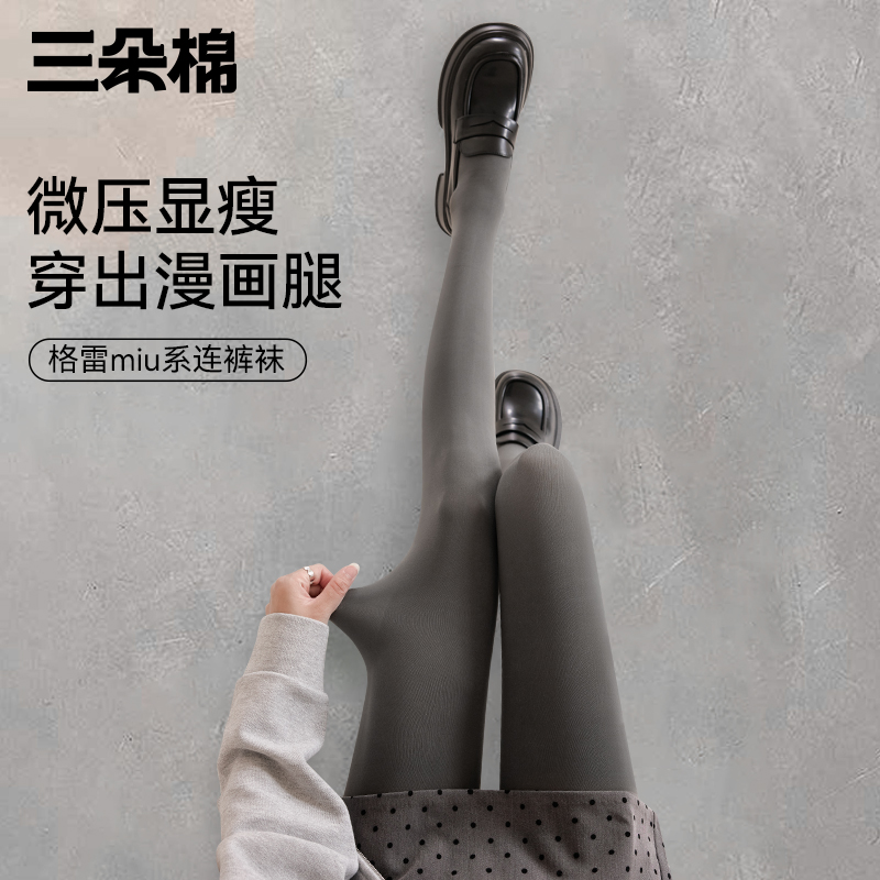 三朵棉灰色连裤袜女春秋冬不掉裆灰色丝袜2025新款压力瘦腿打底裤