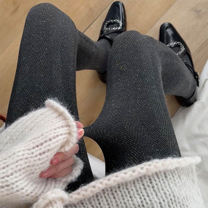 高级感灰色丝袜女2025新款爆款秋冬季御姐银丝竖条高弹打底连裤袜