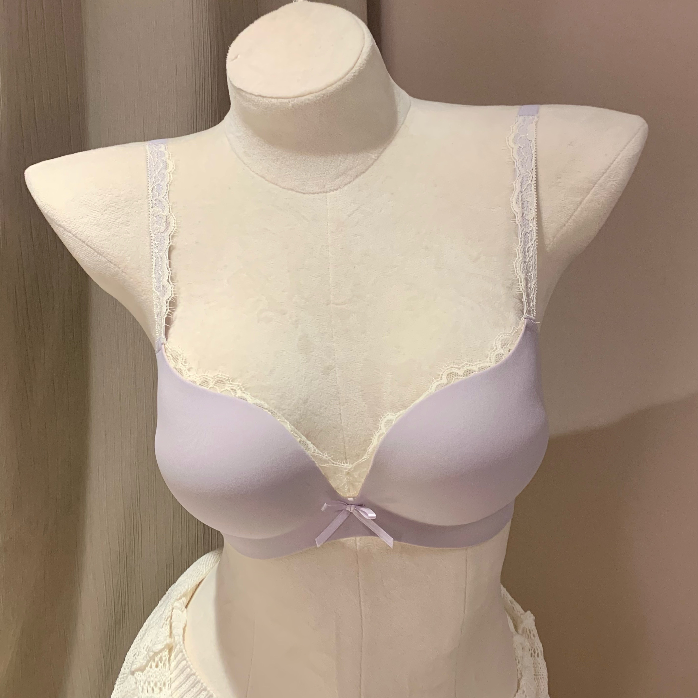 Kbra牛奶缎法式深V领内衣女夏细肩带无痕三角杯小胸无钢圈文胸薄