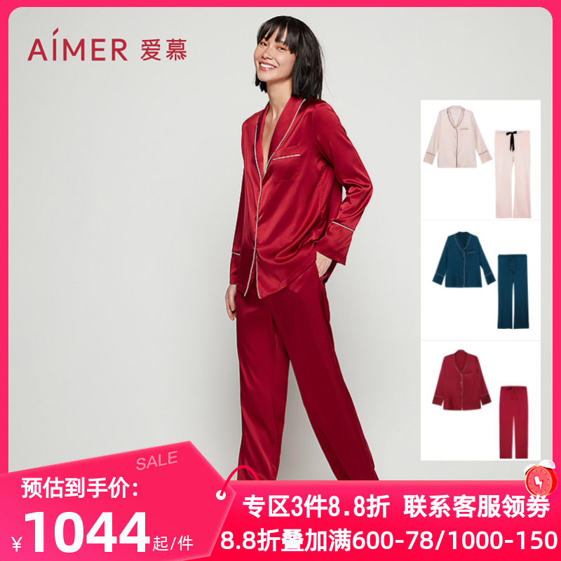 爱慕春秋季桑蚕丝睡衣睡裤女士红色本命年长袖家居服套装AM465571