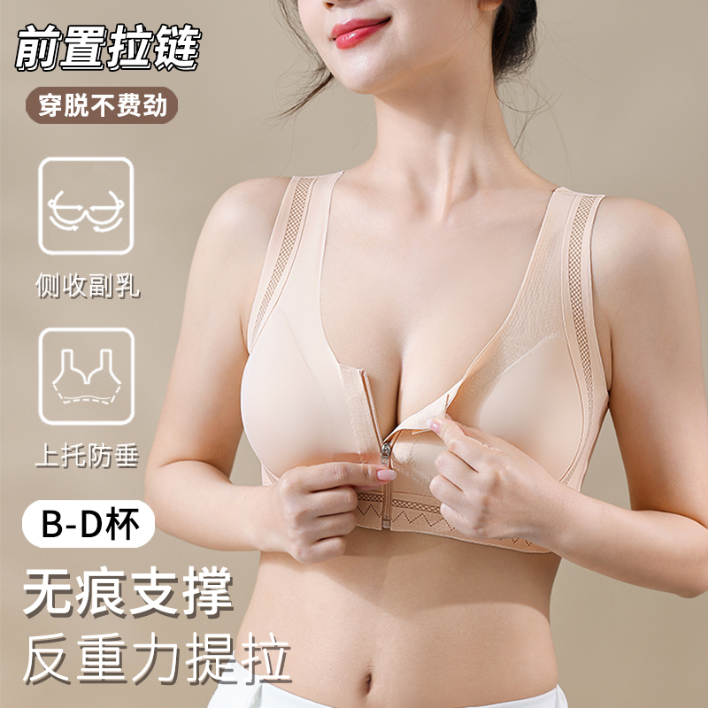 美背2025年新款爆款前拉链大胸显小胸全罩杯薄款运动防震大码文胸