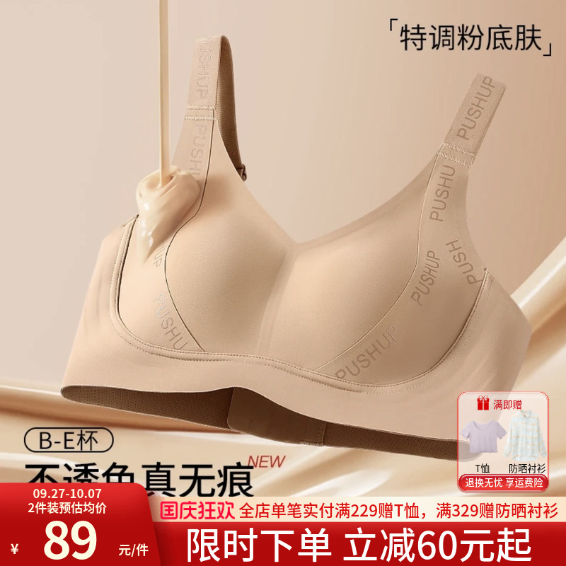 简密无痕内衣女大胸显小美背全罩杯防下垂上托收副乳大码文胸运动