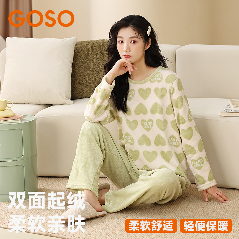TugTug半边绒11月子服秋冬季孕妇睡衣女款加厚加绒保暖长袖家居服