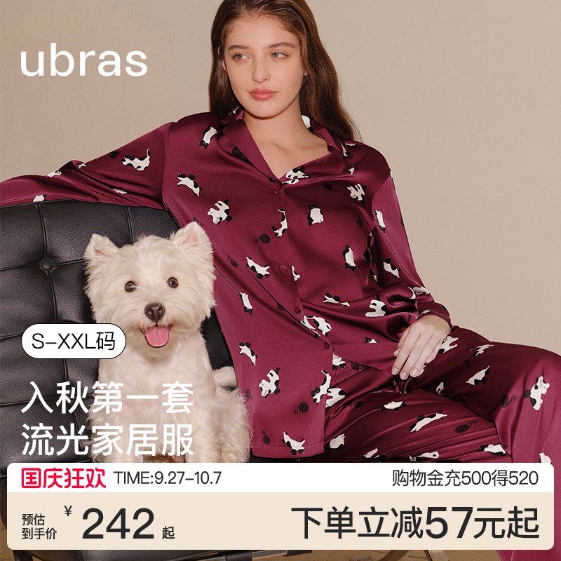 ubras流光家居服女士缎面睡衣长袖长裤可外穿情侣套装男款秋冬季