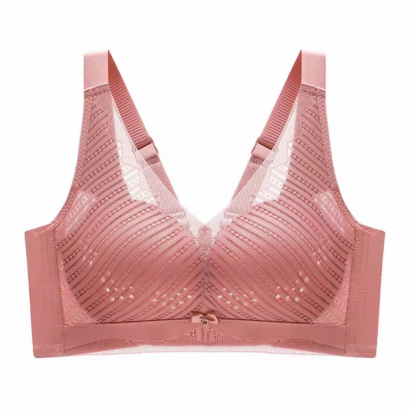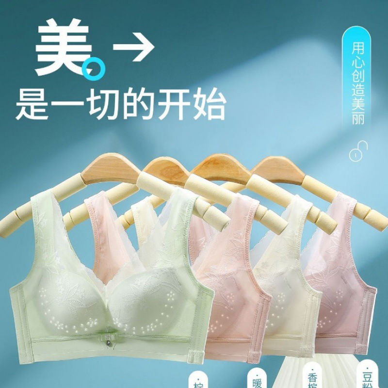 女士背心式无钢圈蕾丝文胸中模杯透气深V收副乳调整型四排扣内衣