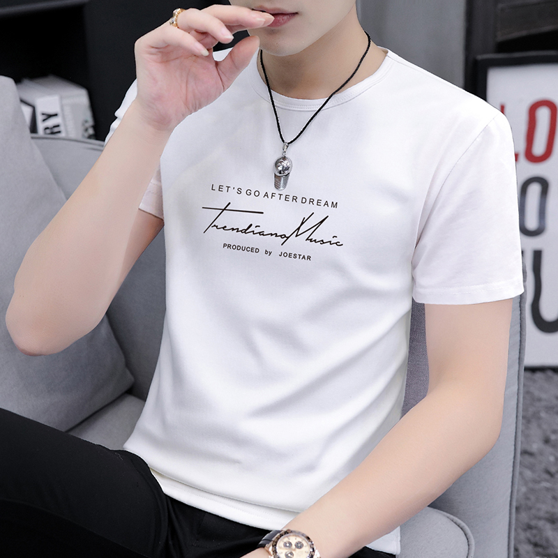 夏装男士圆领短袖T恤白色纯棉透气汗衫潮流韩版男装印花字母体恤