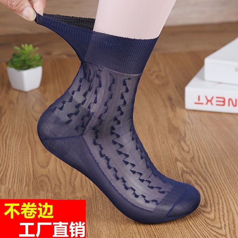 男士丝袜锦纶中老年人松口尼龙袜中筒夏季超薄冰丝袜子男短丝光袜