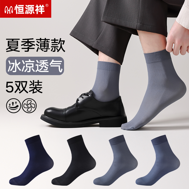 恒源祥男士丝袜中老年夏季超薄冰丝透气夏天锦纶丝光薄款中筒长袜