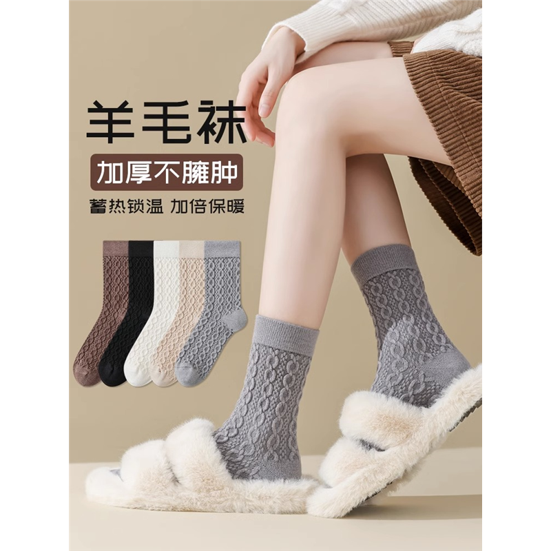 日本羊绒袜子女冬季加绒加厚中筒袜保暖月子袜秋冬款睡眠地板长袜