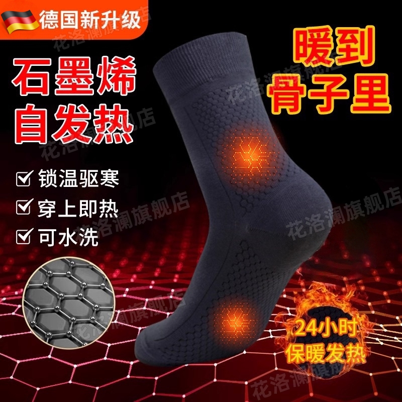 日本石墨烯自发热袜子冬季男士中长筒加热暖脚神器防寒保暖袜睡觉