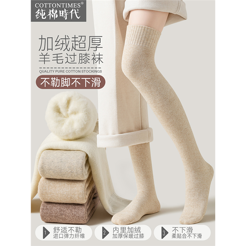 日本专柜GP羊绒长筒袜子女秋冬加厚加绒羊毛保暖长腿袜护膝过膝袜