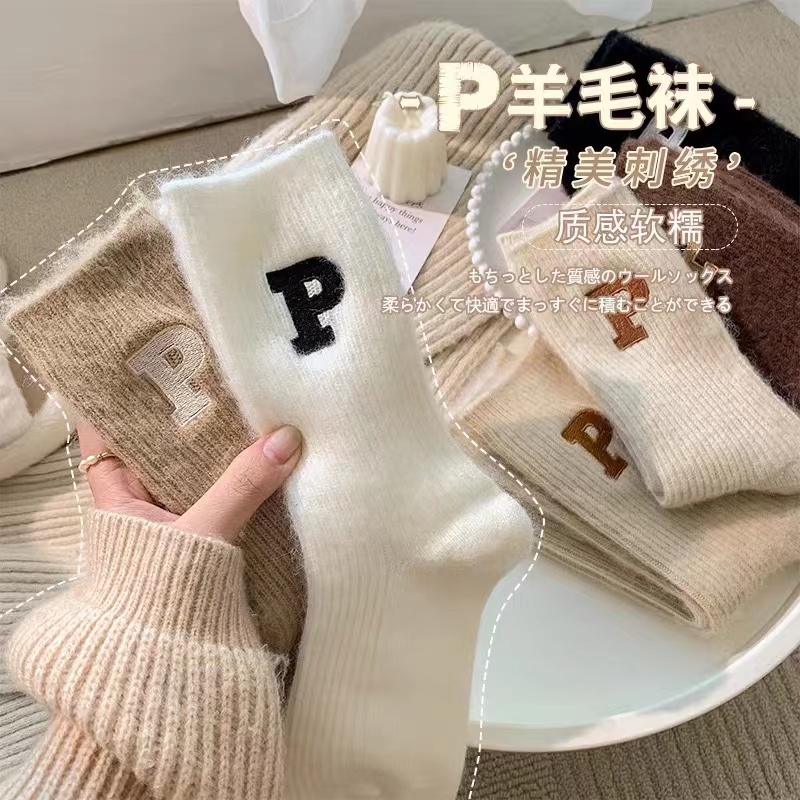 日本专柜GP羊毛袜子女秋冬中筒袜加厚款长筒棉袜长袜保暖羊绒高筒