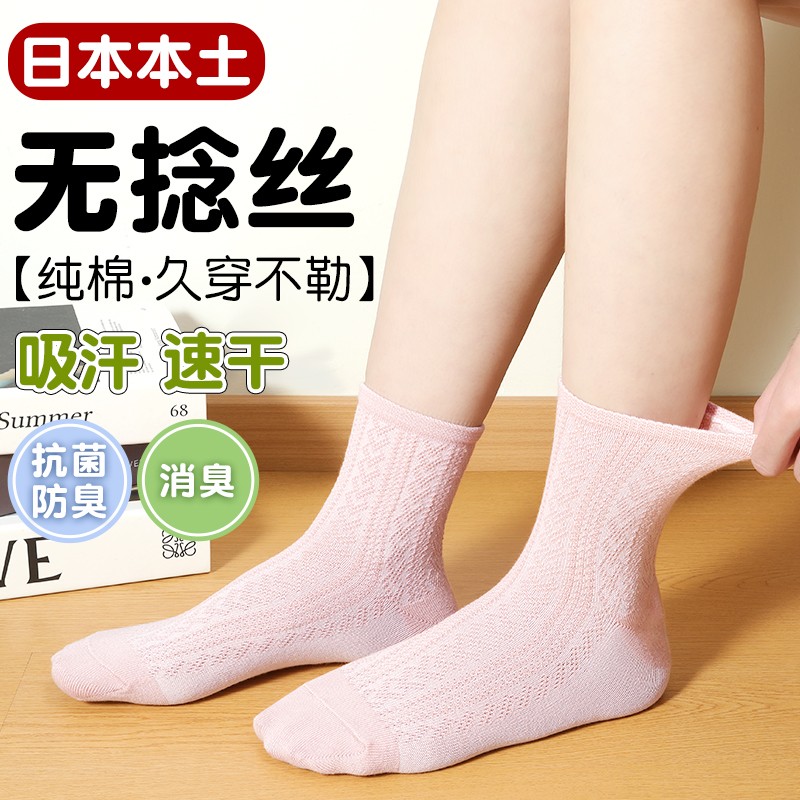 日本奈良靴下棉足100%纯棉袜子女士发热保暖短袜百搭秋冬季中长筒