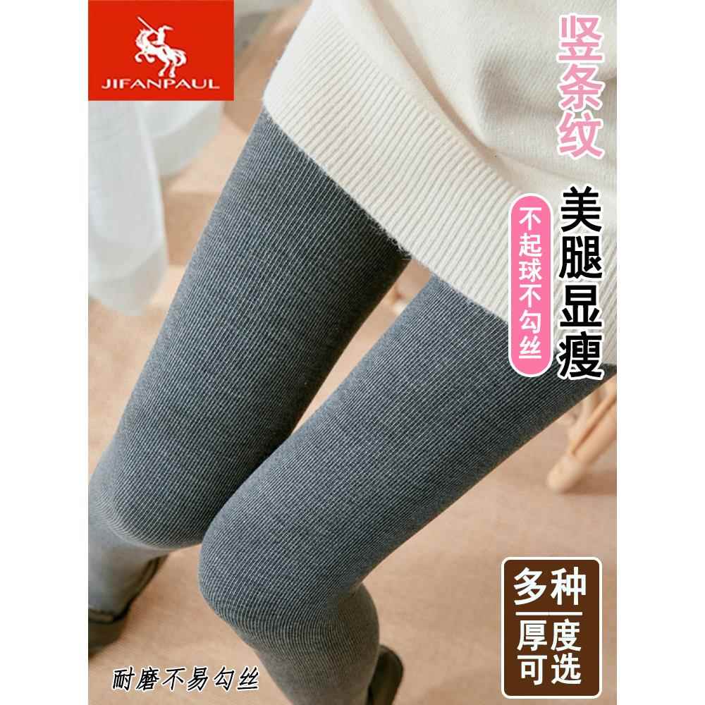 浪莎2025秋冬螺纹竖条纹打底裤女加绒加厚连裤袜外穿踩脚春秋薄款