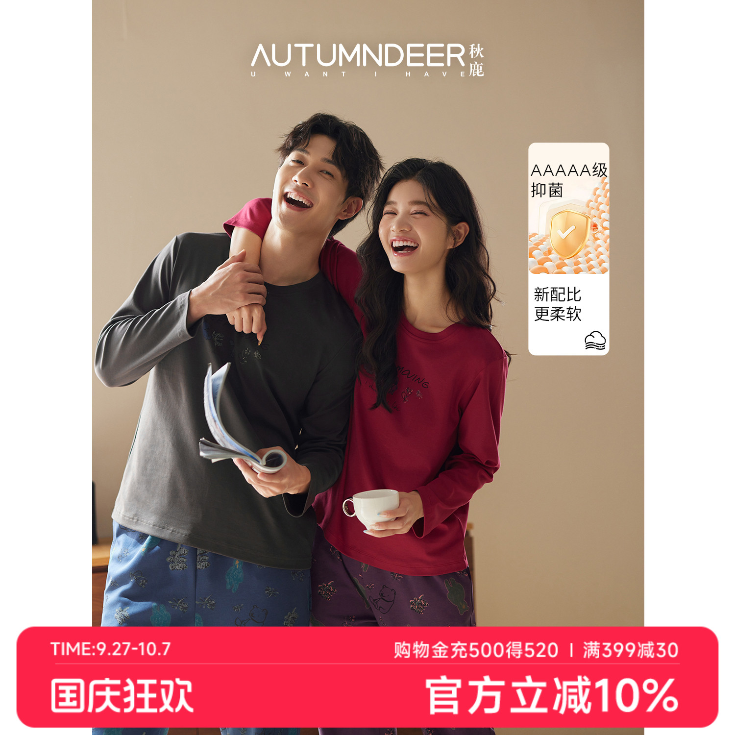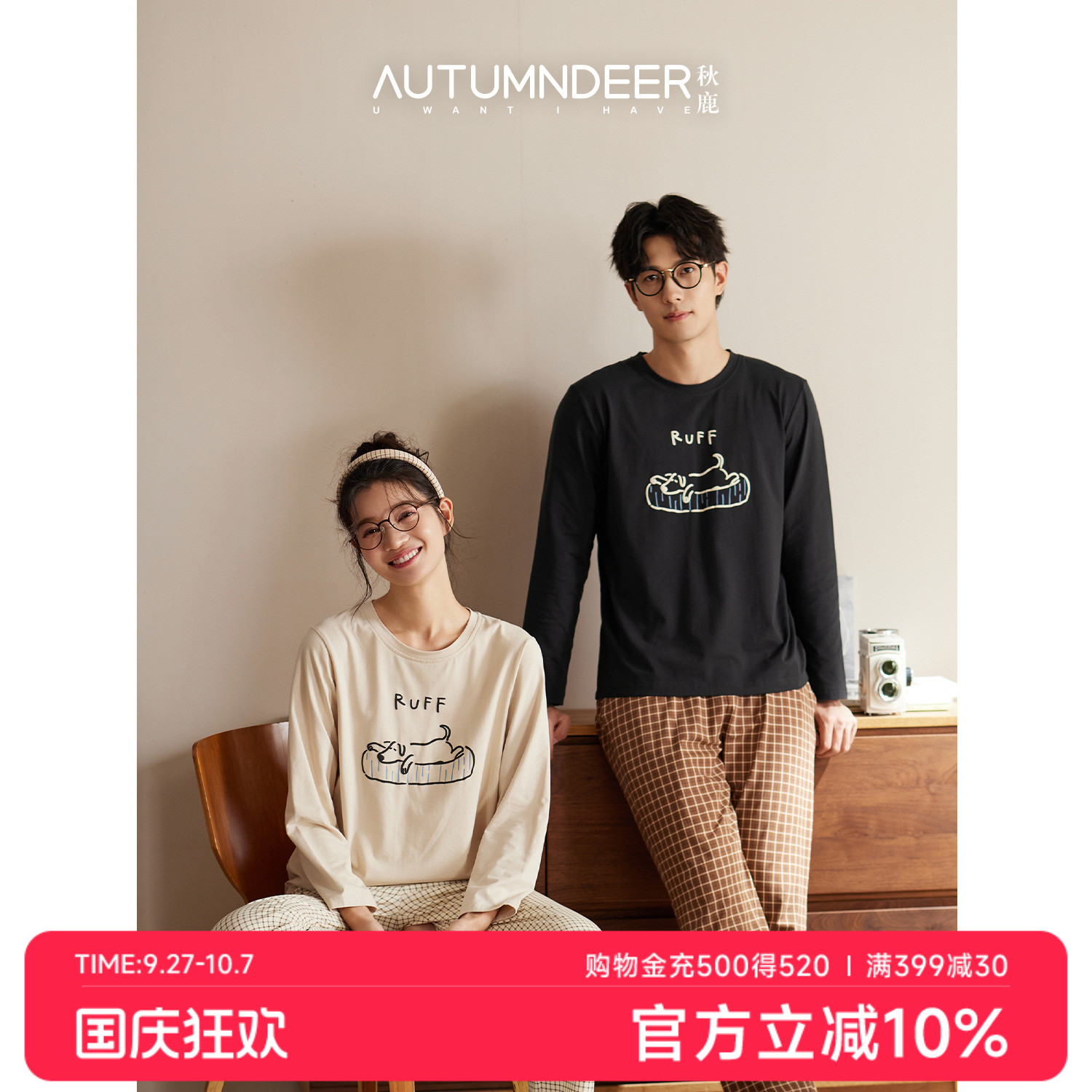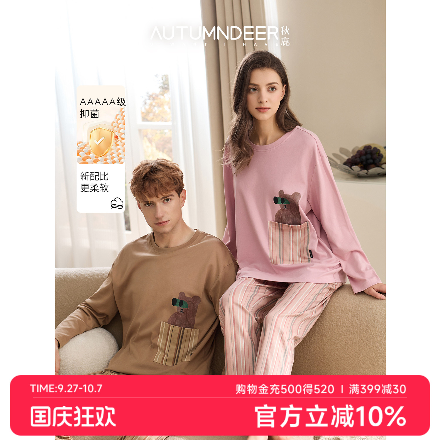 秋鹿情侣睡衣女款秋冬季纯棉卡通长袖家居服男秋天休闲宽松可外穿