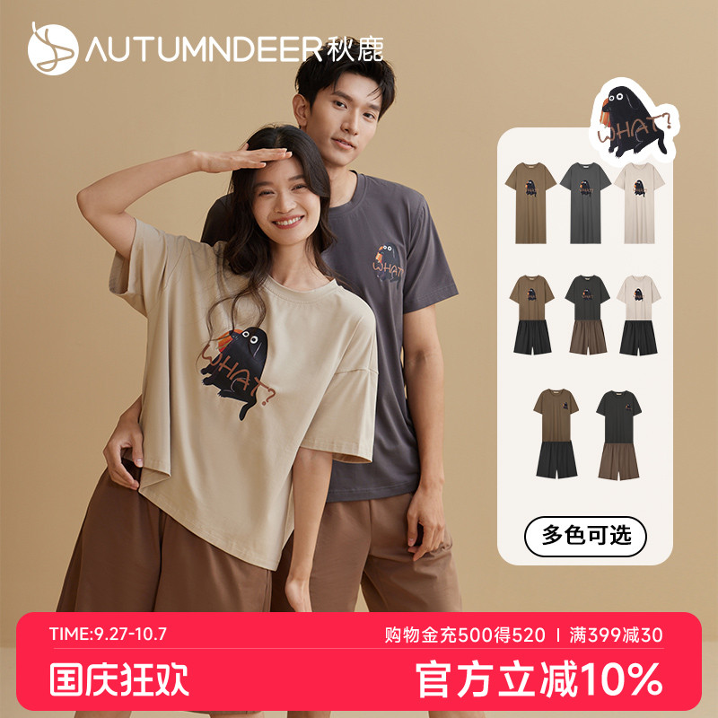 【秒杀捡漏/断码清仓】秋鹿睡衣女士男士短袖短裤春夏情侣家居服