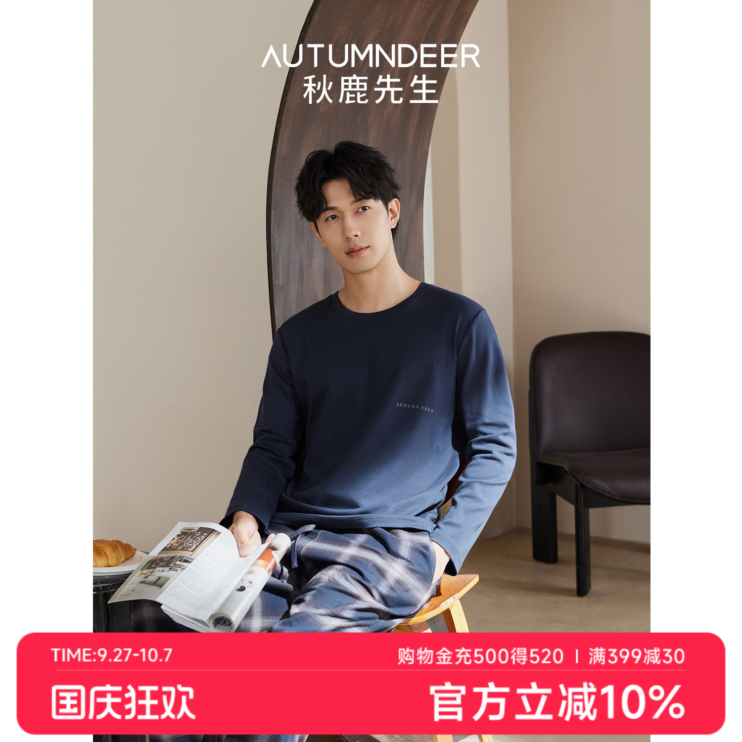 【断码特卖捡漏】秋鹿长袖长裤纯棉睡衣女夏季简约男士家居服情侣
