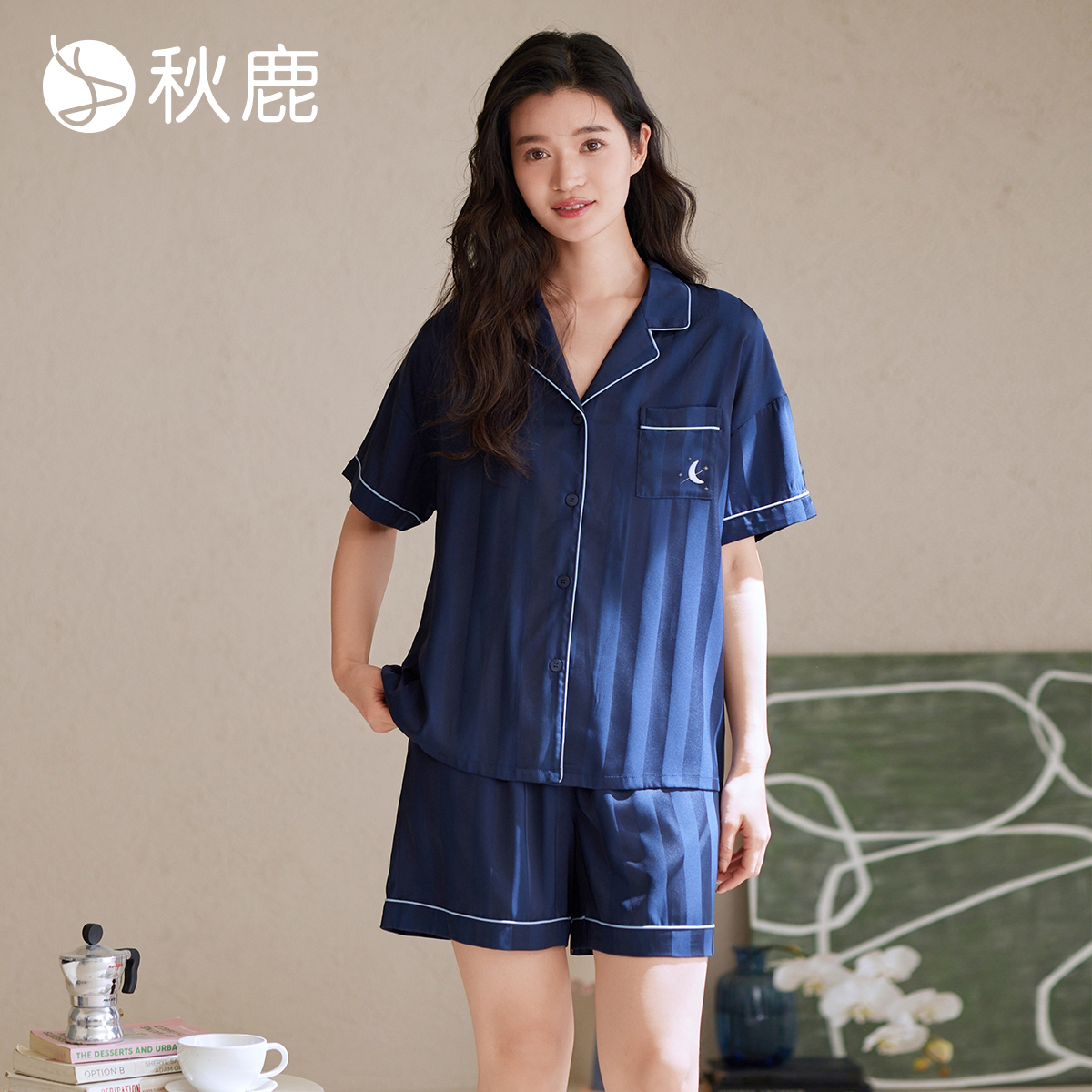 秋鹿情侣睡衣2025新款夏季薄款短袖短裤冰丝柔软男女士家居服套装