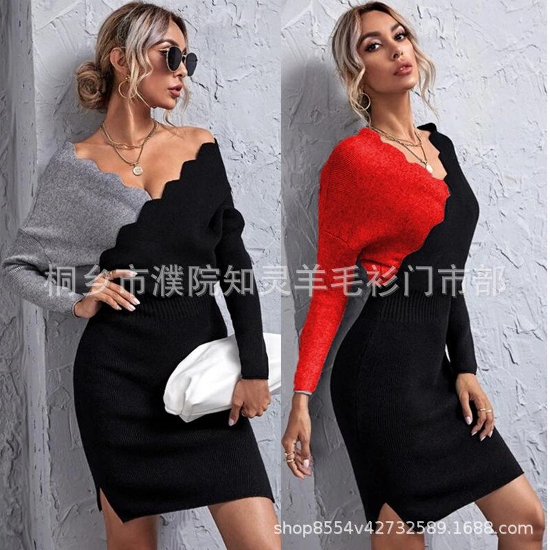 棉洋性感女神大v领慵懒针织毛衣 纯欲风收腰显瘦遮肉露锁骨针织衫