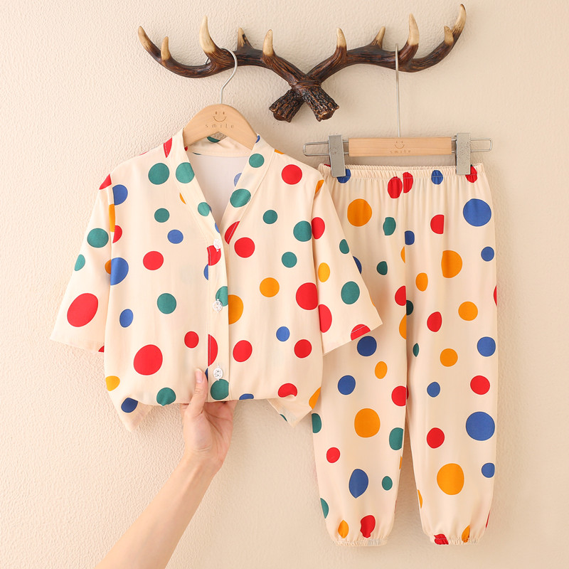 2025新款儿童绵绸家居服套装夏季男女小孩睡衣宝宝棉绸空调服薄款