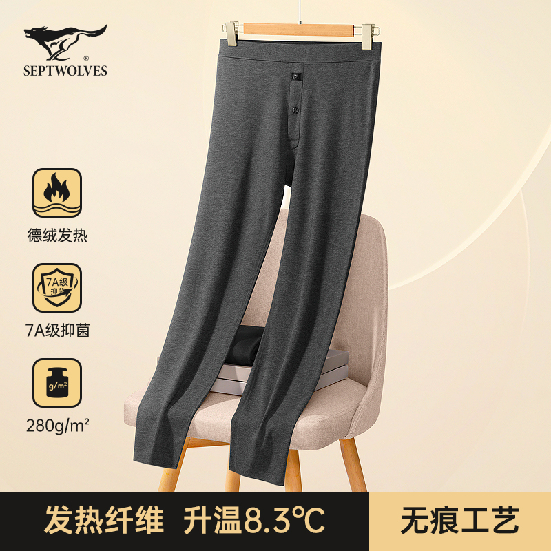 七匹狼男士加绒加厚带护膝盖保暖裤秋冬季中老年人爸爸防寒腿秋裤