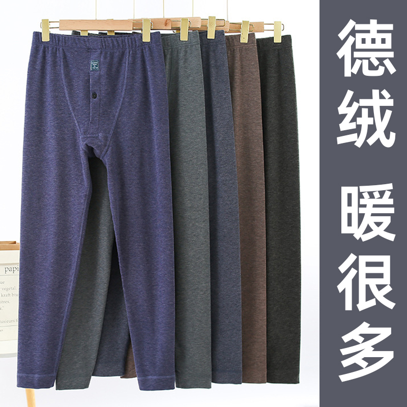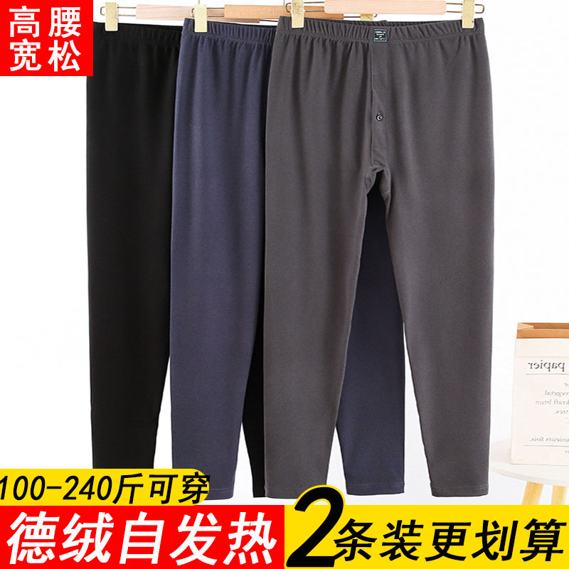 德绒秋裤男士加肥加大码宽松衬裤中老年人薄款冬季爸爸高腰保暖裤