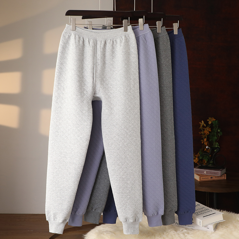 顶呱呱顶瓜瓜彩棉加绒加厚保暖裤男高腰贴片护膝爸爸秋裤棉毛单裤