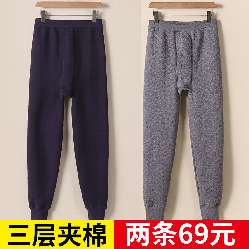雅鹿三层夹棉保暖裤男士纯棉家居裤加厚秋裤中老年人爸爸衬裤睡裤