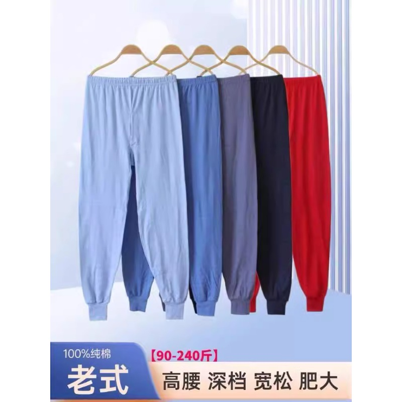 中老年人男士秋裤纯全棉线内衬穿爸爸宽松加肥大码薄款打底保暖裤