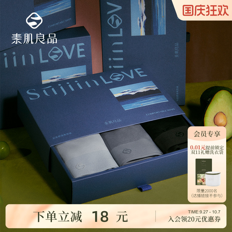 素肌良品男士内裤男生莫代尔无痕平角裤抗菌纯棉裆四角短裤礼盒装