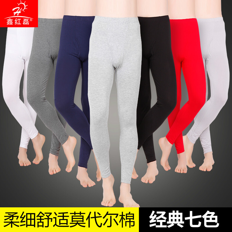 男士大红秋裤加肥加大单件薄款莫代尔棉打底裤保暖裤修身衬裤线裤