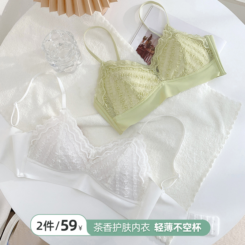 法式蕾丝三角杯内衣女大胸显小胸聚拢少女风性感纯欲薄款抹文胸罩