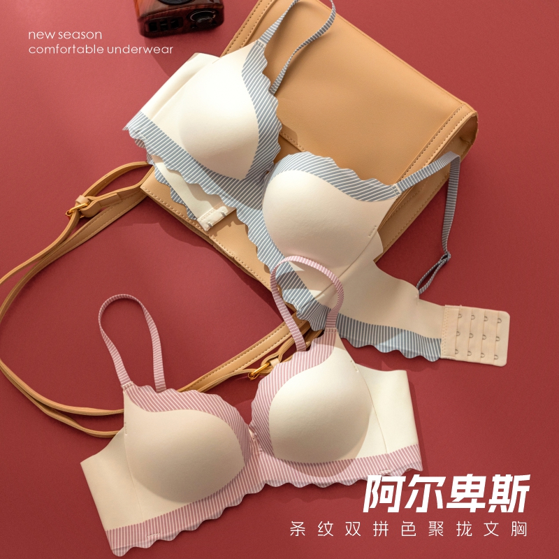 撞色无痕内衣女小胸聚拢显大无钢圈纯欲风性感防下垂上托文胸套装