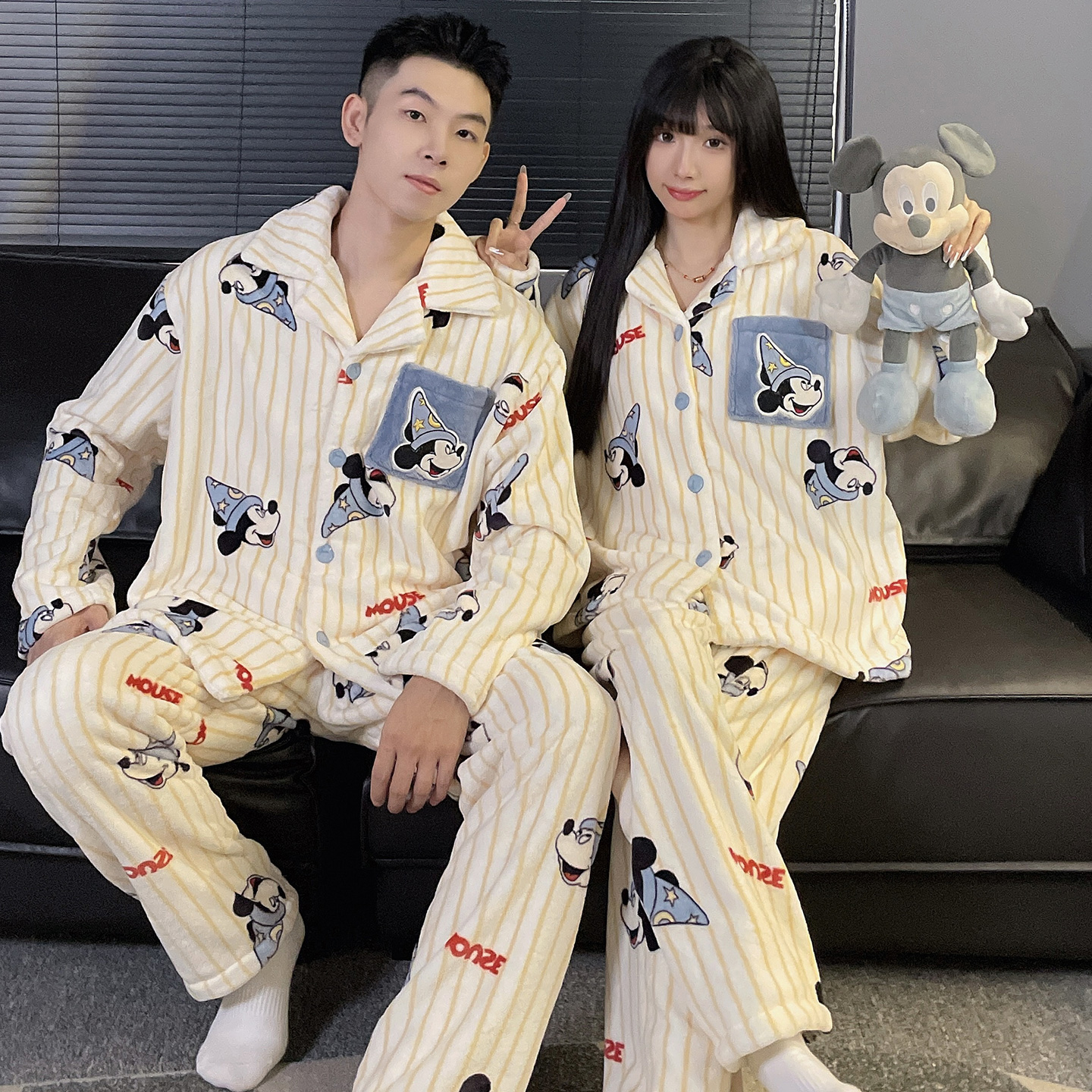 顶瓜瓜摇粒绒睡衣冬季加绒加厚情侣长袖珊瑚绒家居服