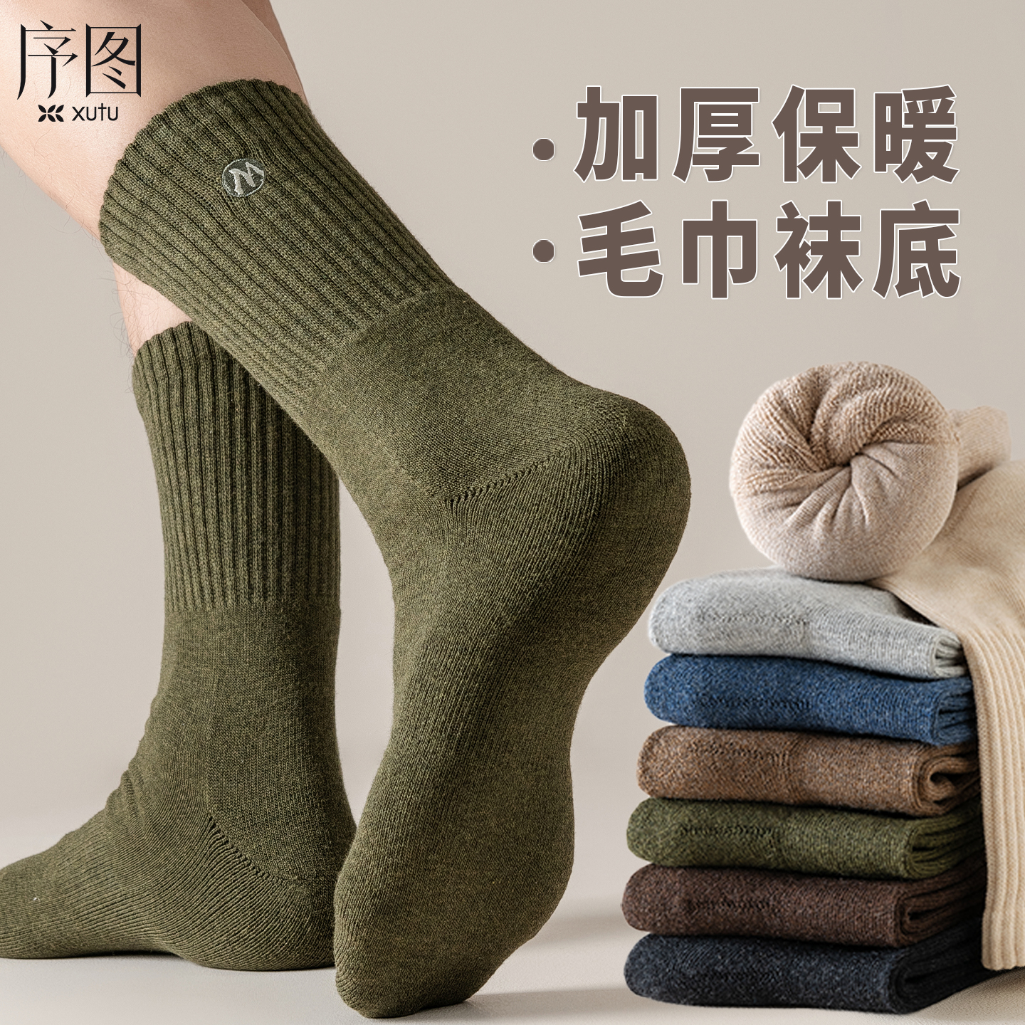 纯棉中筒袜子男士秋冬款加厚绒毛巾底吸汗防臭7a抗菌冬季长袜全棉