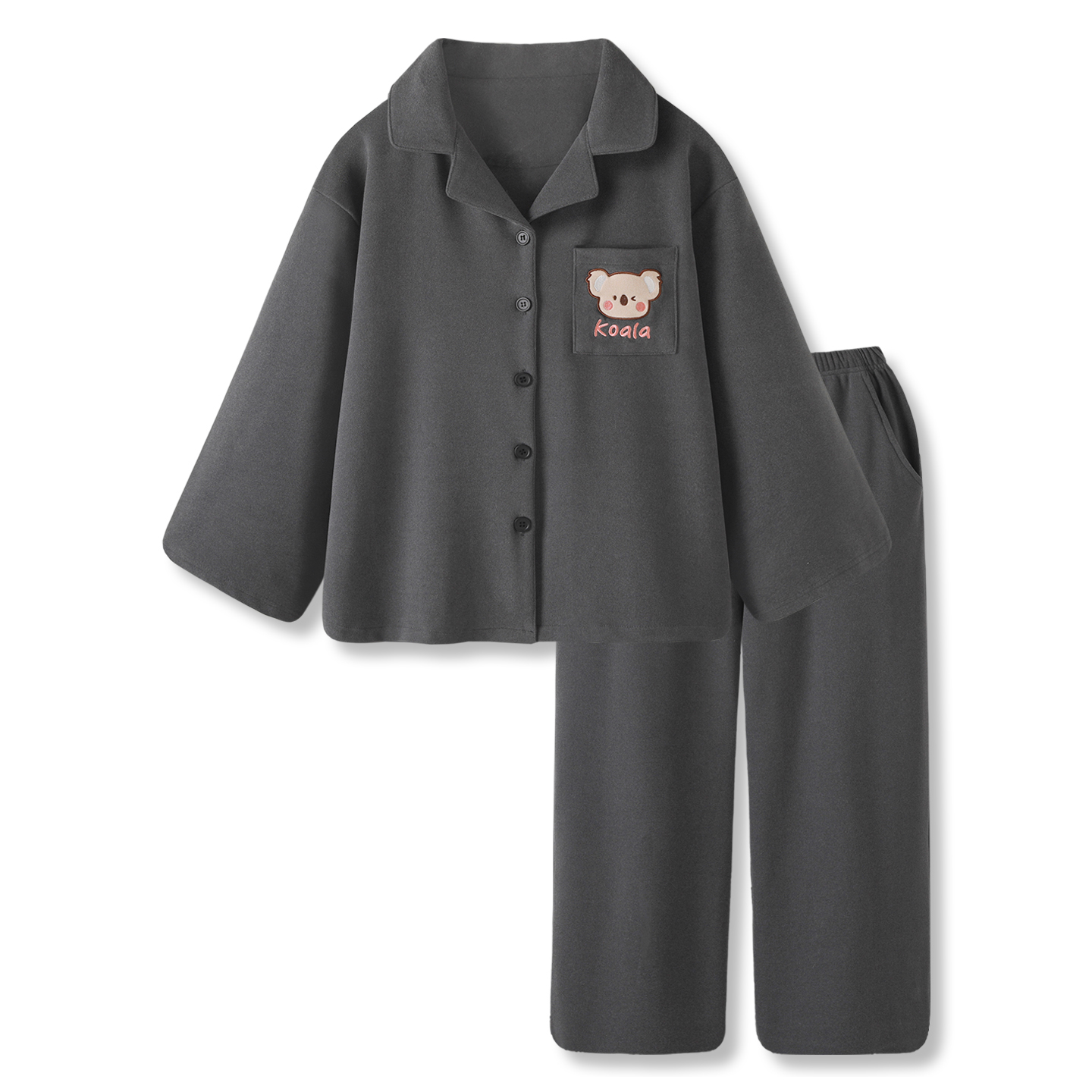 珊瑚绒睡衣女秋冬卡通加厚加绒黑色麦穗可爱学生法兰绒家居服套装