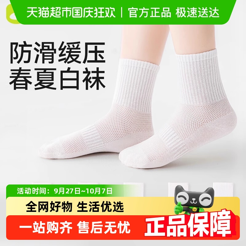 久岁伴儿童袜子男童女童夏季新款中筒棉袜中大童学生运动透气白袜